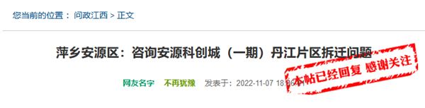 征收!萍鄉(xiāng)一地網友咨詢拆遷問題!官方回復了!