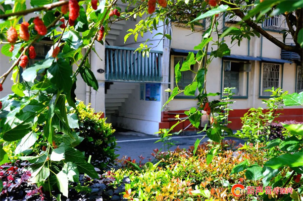 清晨的風(fēng),散發(fā)著草木的清香。后埠街道辦事處五里井小區(qū),玫瑰、月季、三角梅競相開放,火紅的桑葚掛滿枝頭,宛如一座“花果園”。