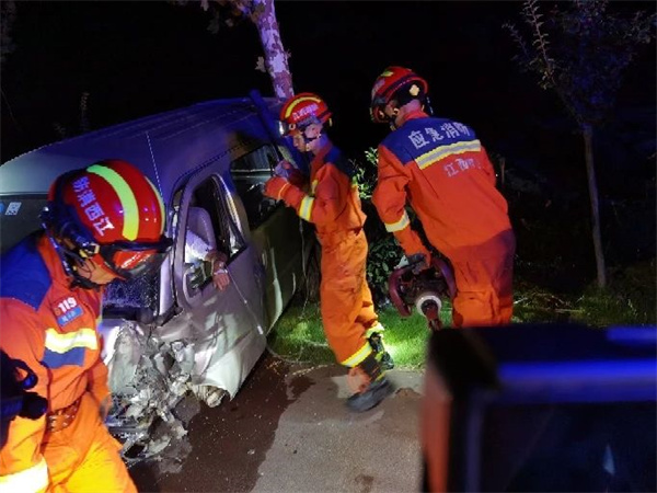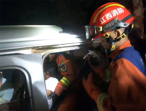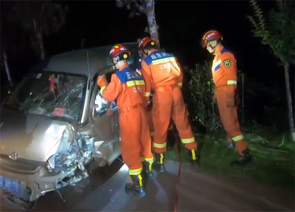 消防救援人員發(fā)現(xiàn)一輛小型面包車