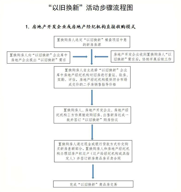 房地產(chǎn)開發(fā)企業(yè)、房地產(chǎn)經(jīng)紀(jì)機(jī)構(gòu)、置換購房人三方可根據(jù)實(shí)際自主協(xié)商采取房地產(chǎn)開發(fā)企業(yè)或房地產(chǎn)經(jīng)紀(jì)機(jī)構(gòu)直接收購模式或“舊房?jī)?yōu)先賣、新房放心買”交易模式。