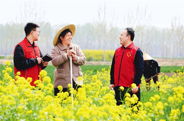各地區(qū)以開展深入貫徹中央八項規(guī)定精神學(xué)習(xí)教育為契機,組織力量深入基層一線、田間地頭走訪調(diào)研,了解群眾“急難愁盼”問題,將作風(fēng)建設(shè)成果切實轉(zhuǎn)化為為民服務(wù)的實際成效。圖為2025年4月8日,山東省臨沂市郯城縣黨員志愿者在田間了解春季農(nóng)業(yè)生產(chǎn)及鄉(xiāng)村產(chǎn)業(yè)發(fā)展情況。