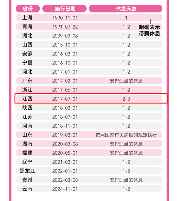江西的“痛經(jīng)假”自2017年7月1日施行,天數(shù)為2-3天。