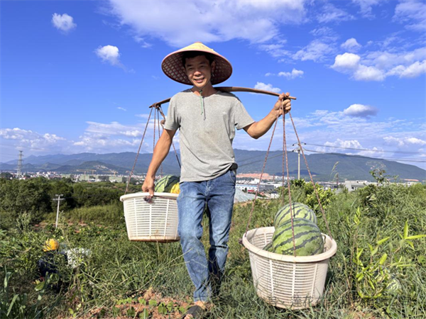 “臍橙樹(shù)剛種下第三年,離豐產(chǎn)期還有一兩年。套種西瓜就是想長(zhǎng)短結(jié)合增加些收入。”朱益德指著地里碩大的西瓜說(shuō),“沒(méi)想到在這荒山改造的臍橙園里,頭茬西瓜長(zhǎng)得這么好,產(chǎn)量高、瓜也甜!”據(jù)估算,此次套種了近30畝的美都西瓜,平均畝產(chǎn)高達(dá)2800斤。