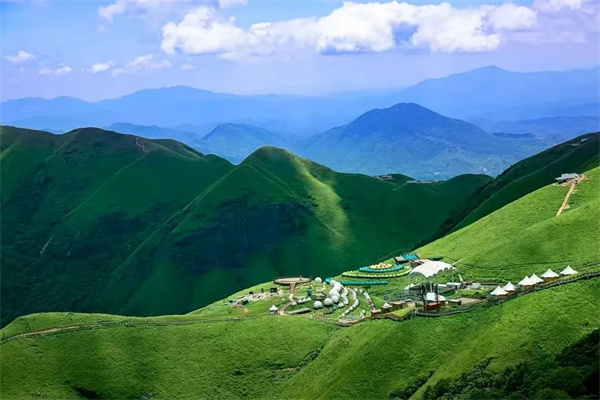 自古,武功山便是江南三大名山之一,享有“衡首廬尾武功中”的美譽。古往今來,來此登山游賞、吟詩作賦的文人墨客數(shù)不勝數(shù)。景區(qū)主峰白鶴峰海拔1918.3米,十萬畝高山草甸波瀾壯闊,與36處地質(zhì)奇觀、48條瀑布溪流相映成趣,形成“春徒步、夏溯溪、秋露營、冬滑雪”的全季候運動場景。