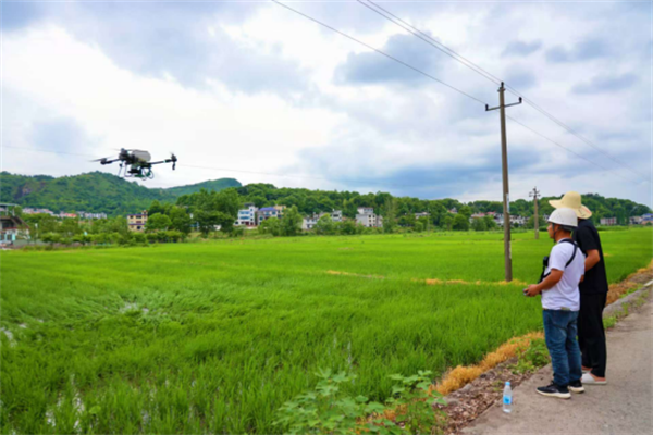 在大城村的千畝稻田中,植保無人機操作人員楊琰昆正通過中控顯示屏查看施肥進度。望著無人機劃過長空,高效開展田間作業(yè),他感慨道:“自從2023年夏收季,青山鎮(zhèn)引入植保無人機以來,借助北斗導(dǎo)航系統(tǒng)實現(xiàn)精準作業(yè),半天即可完成百畝農(nóng)田的施肥任務(wù),相較于人工施肥,效率大幅提高的同時,成本也降低了!”無人機智慧施肥系統(tǒng)根據(jù)土地需求精準調(diào)節(jié)肥料濃度,確保施肥均勻,助力稻田畝產(chǎn)穩(wěn)定在1100斤以上,為農(nóng)業(yè)豐收增添了堅實保障。