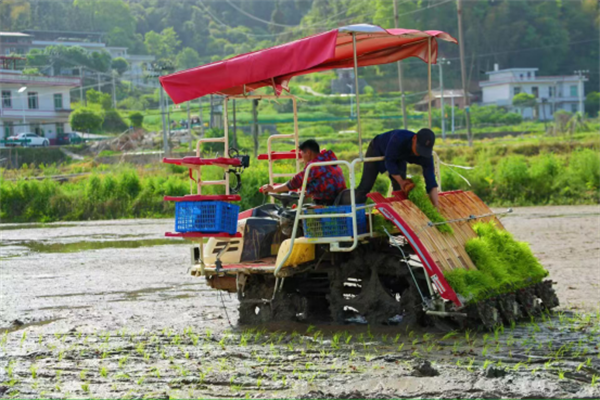 除此之外,青山鎮(zhèn)將機械化、智能化貫穿于農(nóng)業(yè)生產(chǎn)全鏈條,機械化育秧中心內(nèi),全自動流水線以每小時產(chǎn)出500盤的速度,將浸泡后的稻種精準播入秧盤,在恒溫恒濕環(huán)境下,秧苗3天即可破土,配合插秧機能滿足全鎮(zhèn)千畝早稻需求。鎮(zhèn)政府投入80萬元購置的“農(nóng)機大軍”,正在改寫傳統(tǒng)農(nóng)耕的歷史。旋耕機、插秧機、收割機等組成“鋼鐵戰(zhàn)隊”,使水稻機插率突破70%。如今,農(nóng)機隊?wèi){借規(guī)模化、機械化作業(yè),三天即可完成插秧,作業(yè)效率實現(xiàn)從“個體分散式”到“集體機械化”的跨越式提升。