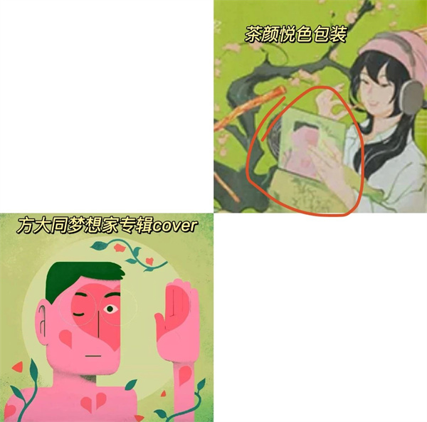記者注意到,該款零食封面上卡通人物所持的專輯和方大同《夢想家》這一專輯封面高度相似。