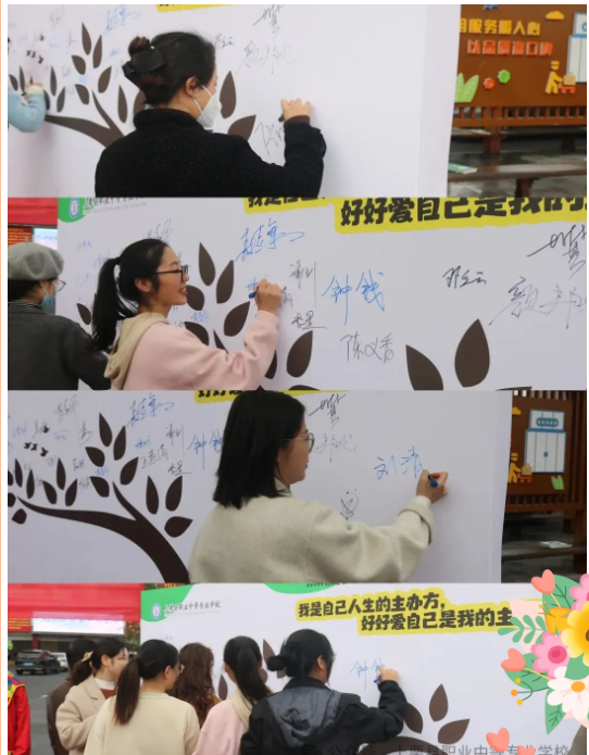 活動(dòng)伊始,主持人熱情開(kāi)場(chǎng),江錦根書記、分管副校長(zhǎng)漆科先后致辭,寄語(yǔ)師生在忙碌的學(xué)業(yè)與工作中不忘關(guān)照內(nèi)心,在愛(ài)自己的旅程中收獲幸福。各位校領(lǐng)導(dǎo)和老師們?cè)诶寺?shù)下鄭重簽名,為活動(dòng)拉開(kāi)序幕,也為每一份“悅己之心”送上期許。